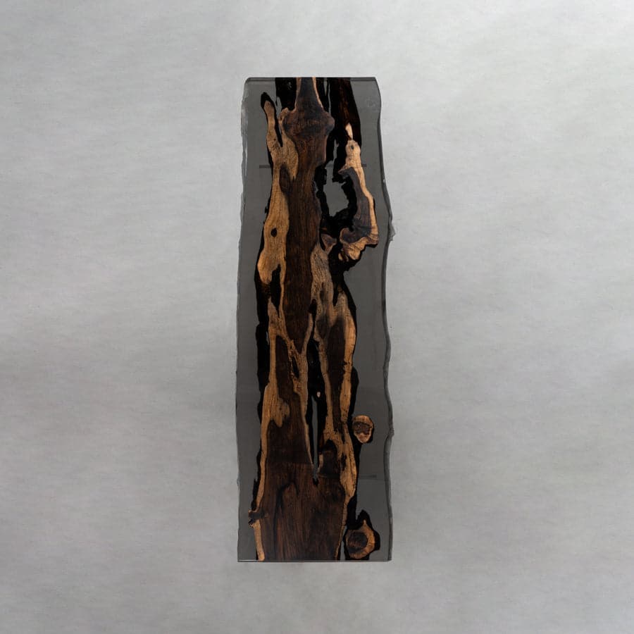 The tabletop features premium epoxy resin, which is expertly cast to create a stunning ice crystal effect. This clear resin not only enhances the table’s strength and durability but also adds a luxurious and contemporary flair. The harmonious interplay between the warm, natural wood and the crystalline resin results in a striking visual appeal that will captivate and inspire.