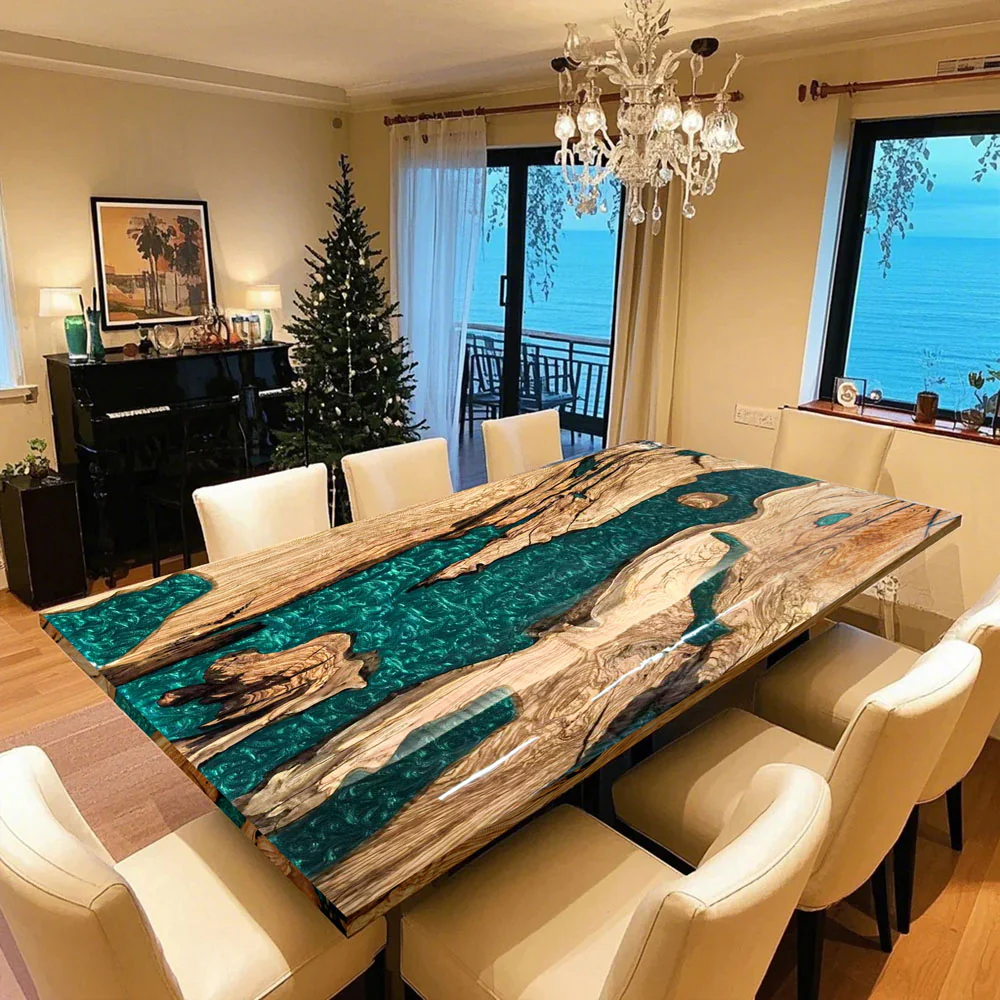 - Home Dining Rooms: Host unforgettable meals surrounded by olive wood’s warmth and resin’s hypnotic glow, paired with minimalist chairs for a balanced aesthetic.