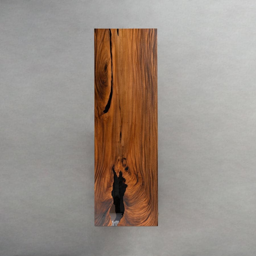 The tabletop is skillfully cast with high-quality epoxy resin, creating a mesmerizing ice crystal effect. This clear resin not only enhances the table’s strength and durability but also adds a luxurious and contemporary touch. The harmonious interplay between the natural wood and the crystalline resin results in a striking visual contrast, making each piece unique and captivating.