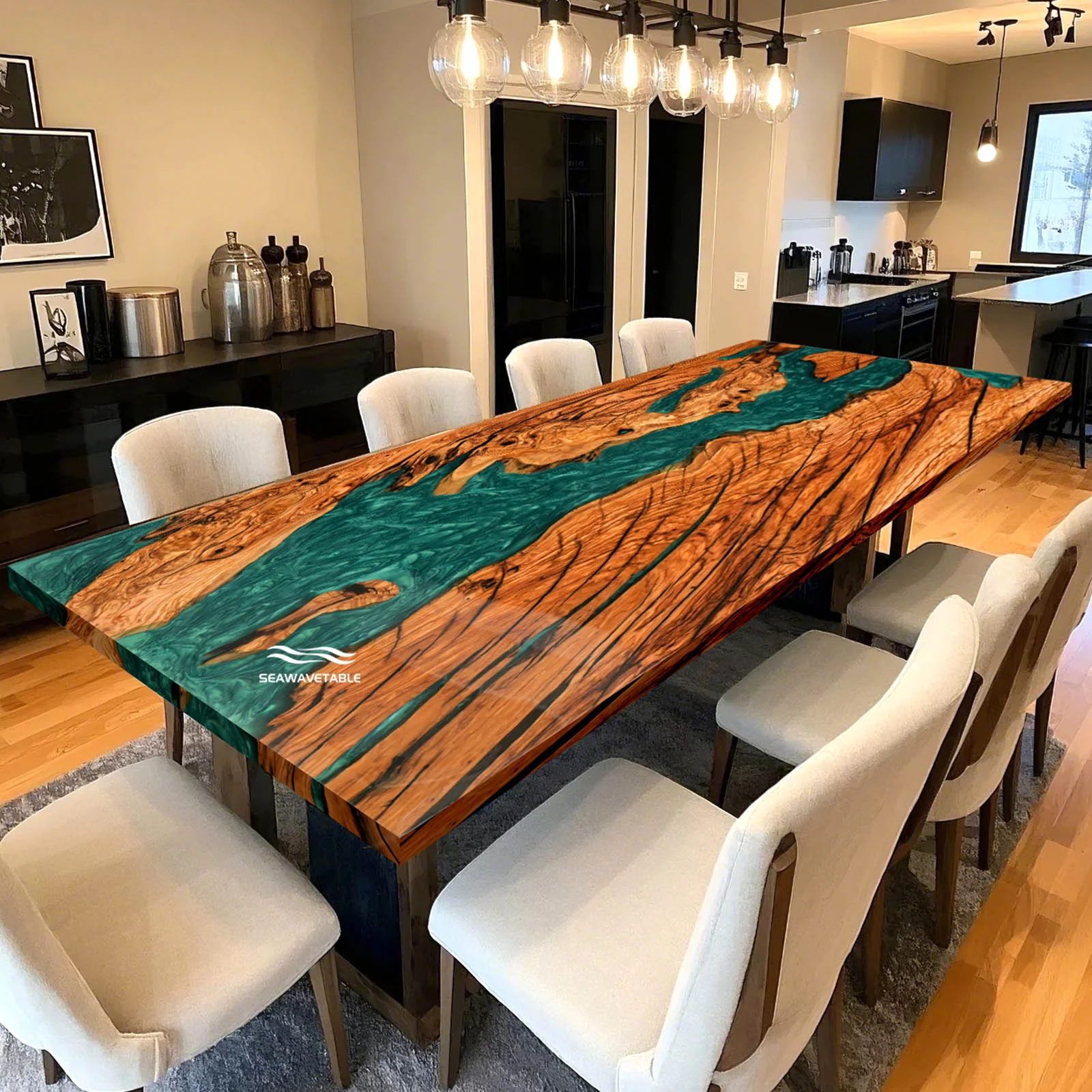 At SeawaveTable, we believe in bringing your vision to life. This custom epoxy resin wood table can be tailored with: