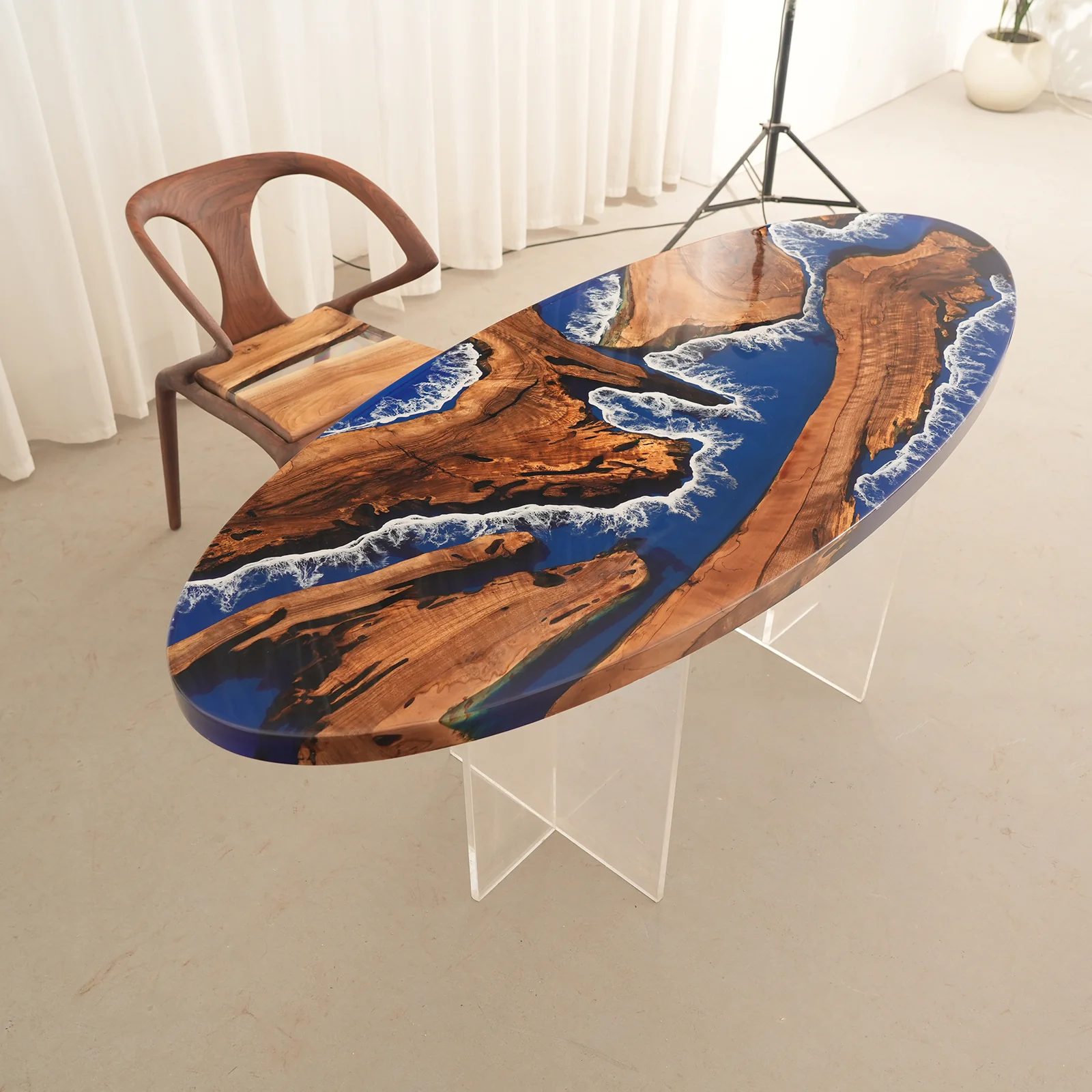 You can also personalize your epoxy color, wave effects, and table shape (oval, round, rectangular, or custom dimensions) to suit your space, style, and imagination.