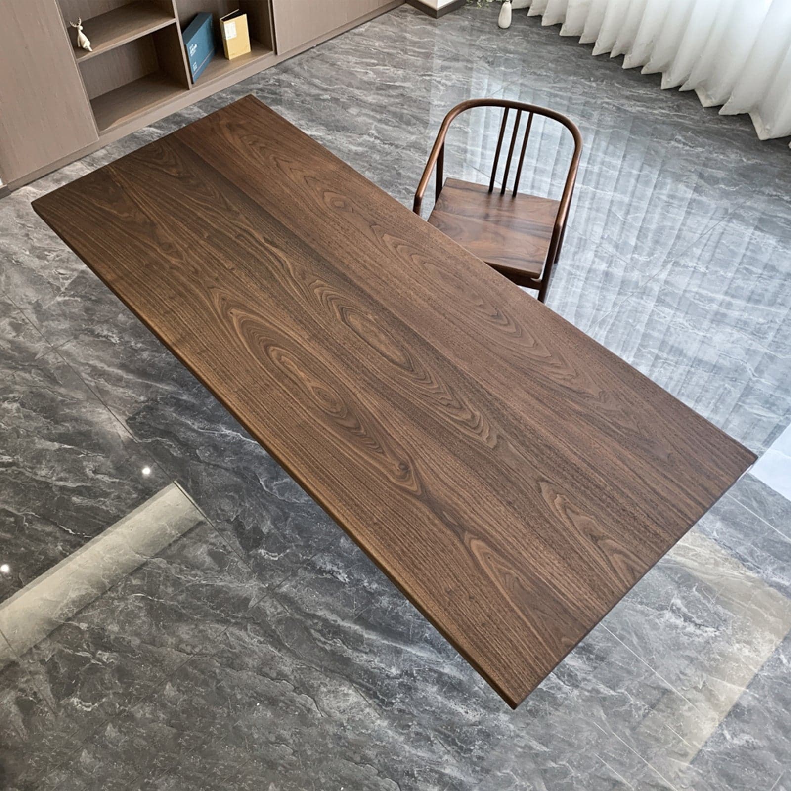 SEAWAVETABLE offers a "Kitchen Black Walnut Wood Slab" with the dimensions 93.70"L x 39.76"W. This beautifully crafted table features a solid black walnut wood slab, showcasing the rich color and natural beauty of the wood. The table is designed with straight edges and a smooth finish, making it suitable for use as a dining table, conference table, or statement piece in a living room. It is priced at approximately $5,459.27 and includes options for free shipping.