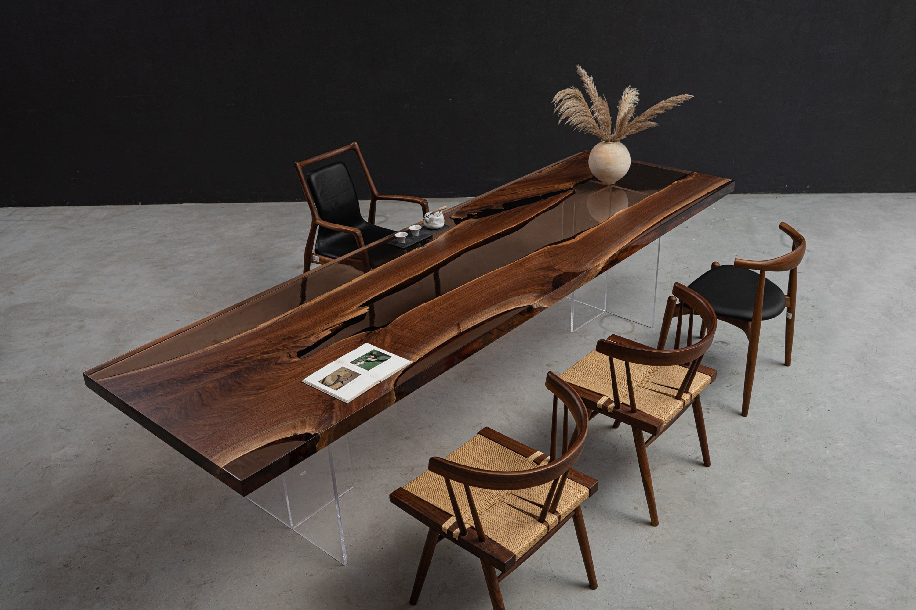 Black Walnut Wood Nature Epoxy Resin Conference Table 118.50"L-35.83"W