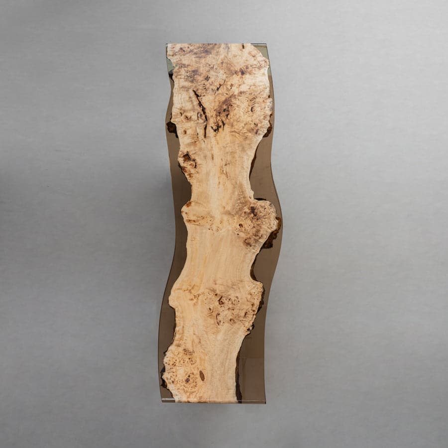 The Poplar Live Edge Ice Crystal Epoxy Resin Dining Table measures 137.80 inches in length and 36.22 inches in width. This dining table features a striking slab of poplar wood, known for its light, creamy tones and distinctive grain patterns. The live edge design retains the natural contours of the wood, adding a rustic and organic charm to the piece. The table is enhanced with a unique "ice crystal" epoxy resin inlay, creating a stunning visual effect that mimics the appearance of frozen water. The clear or frosted resin inlay beautifully contrasts with the warm tones of the poplar wood, highlighting its natural beauty while providing a smooth and durable surface. This table is perfect for a dining room, offering a spacious and elegant surface for meals and gatherings. The combination of the live edge poplar wood and the ice crystal epoxy resin makes this table a captivating centerpiece, blending natural elegance with contemporary style to enhance any dining space.